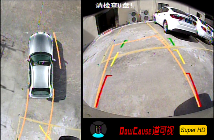 深圳道可視科技有限公司隆重推出帶??柯费隆⒄废迣捄痛蜣D(zhuǎn)向過障礙模式等在內(nèi)的360°全景行車輔助系統(tǒng),是目前市場(chǎng)上實(shí)用的全景產(chǎn)品。該系統(tǒng)可以讓司機(jī)直接在中控顯示器上直接地了解車身四周環(huán)境,新手倒車無憂。