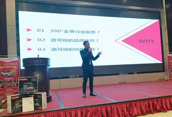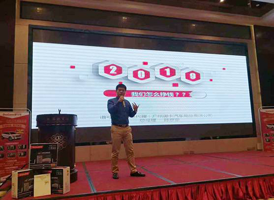 道可視廣東代理、廣州御卡汽車用品有限公司總經(jīng)理陳彥豪先生在會(huì)議中,帶來了“2019年,我們?cè)趺磼赍X?”的主題宣講。他表示360°全景行車輔助系統(tǒng)已經(jīng)成為了汽車后裝電子行業(yè)的發(fā)展趨勢(shì),且安裝車型幾乎覆蓋所有車型,市場(chǎng)潛力巨大。