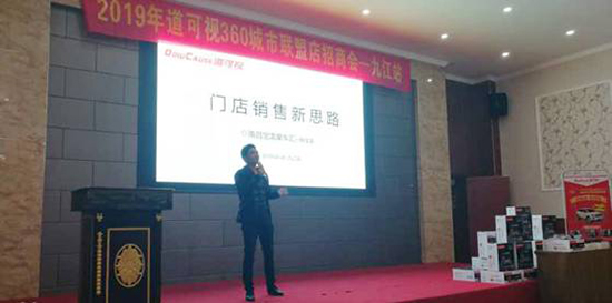 在會(huì)議最后,道可視江西代理商南昌美特麗戴總向門(mén)店代表宣講了道可視在九江區(qū)域市場(chǎng)的規(guī)劃和招商策略。