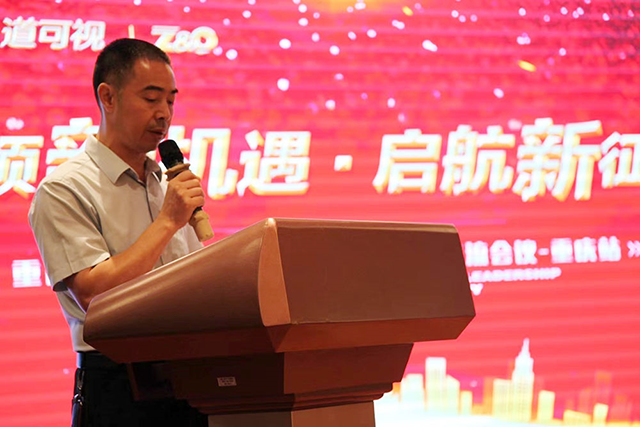 道可視重慶代理唐記唐總作為東道主率先上臺(tái)致辭,唐總對(duì)于嘉賓的到來表示感謝與歡迎,他簡(jiǎn)要分析當(dāng)前渠道商及門店經(jīng)營現(xiàn)狀,表示在多方面的壓力之下,想要取得更好的發(fā)展,更應(yīng)該相信品牌的力量。